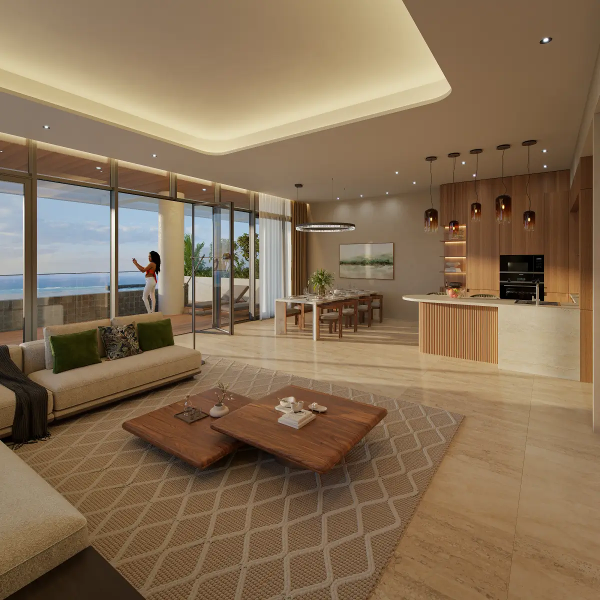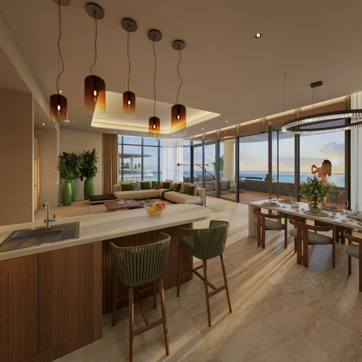 Ultra-luxury top-floor residences featuring expansive open-plan living, premium European materials, designer furniture collections, and breathtaking Indian Ocean panoramas. Each penthouse includes private infinity pools and extensive terraces.