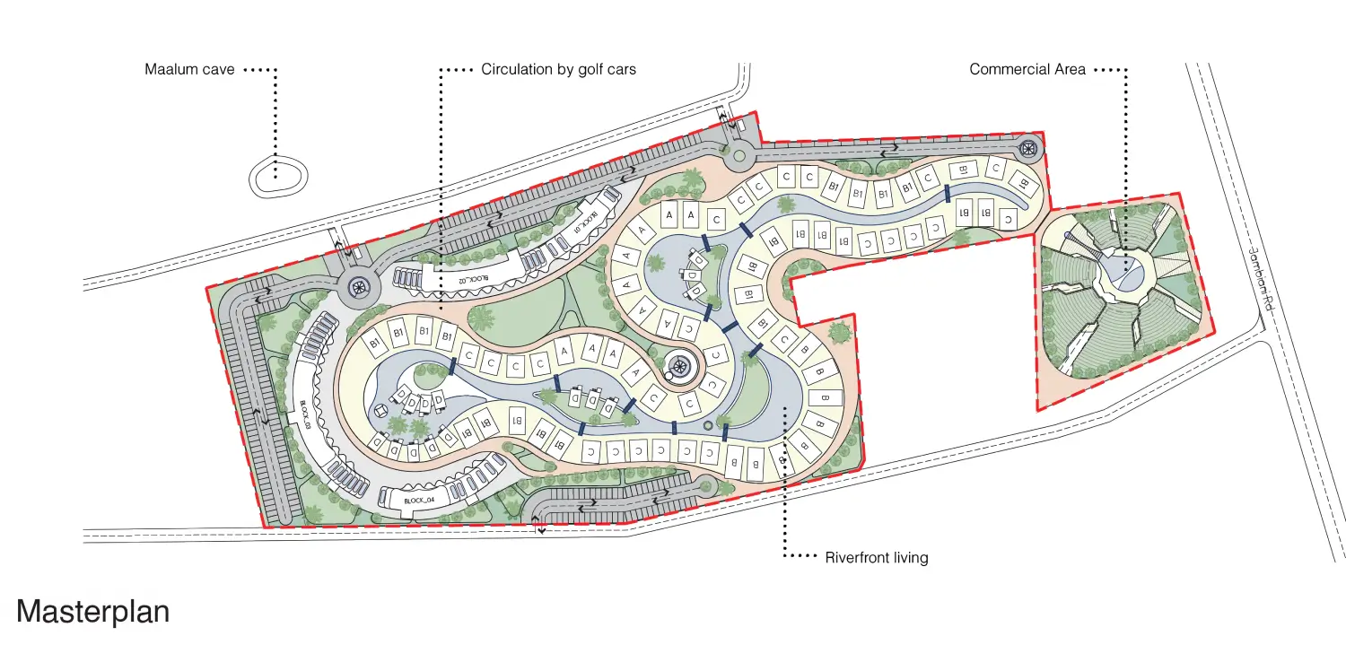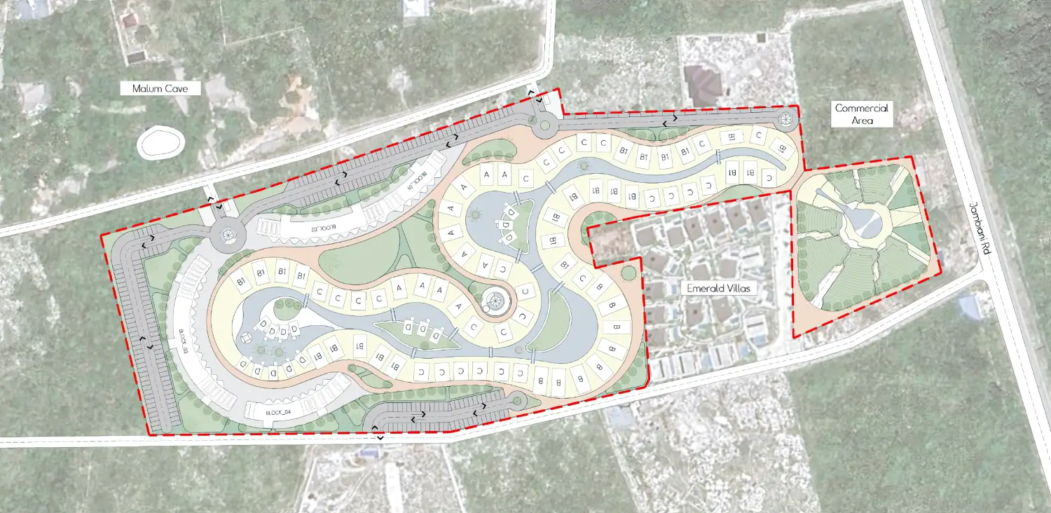 Meandering green corridors and serene canals flow throughout the estate, creating a tropical sanctuary that invites nature into everyday life and promotes peaceful, resort-style living.